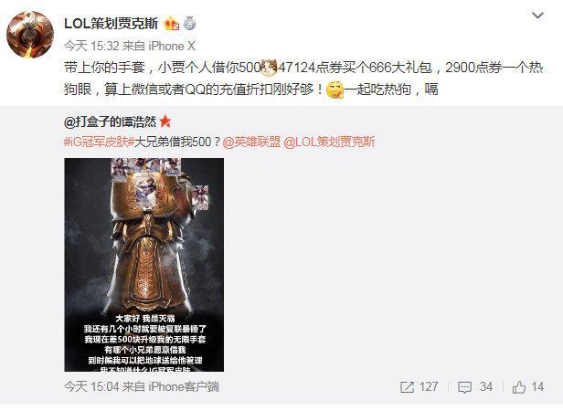 而在比赛现场,王思聪大口吃热狗的照片更是在微博上火了起来,引发了一股热潮,没想到LOL官方竟然特地为王思聪做了一款吃热狗的眼石皮肤,这牌面也是够大了。比赛结束后王思聪在微博上进行的大抽奖更是引来了千万人转发,再次带动了人们对IG夺冠这一事件的关注度。